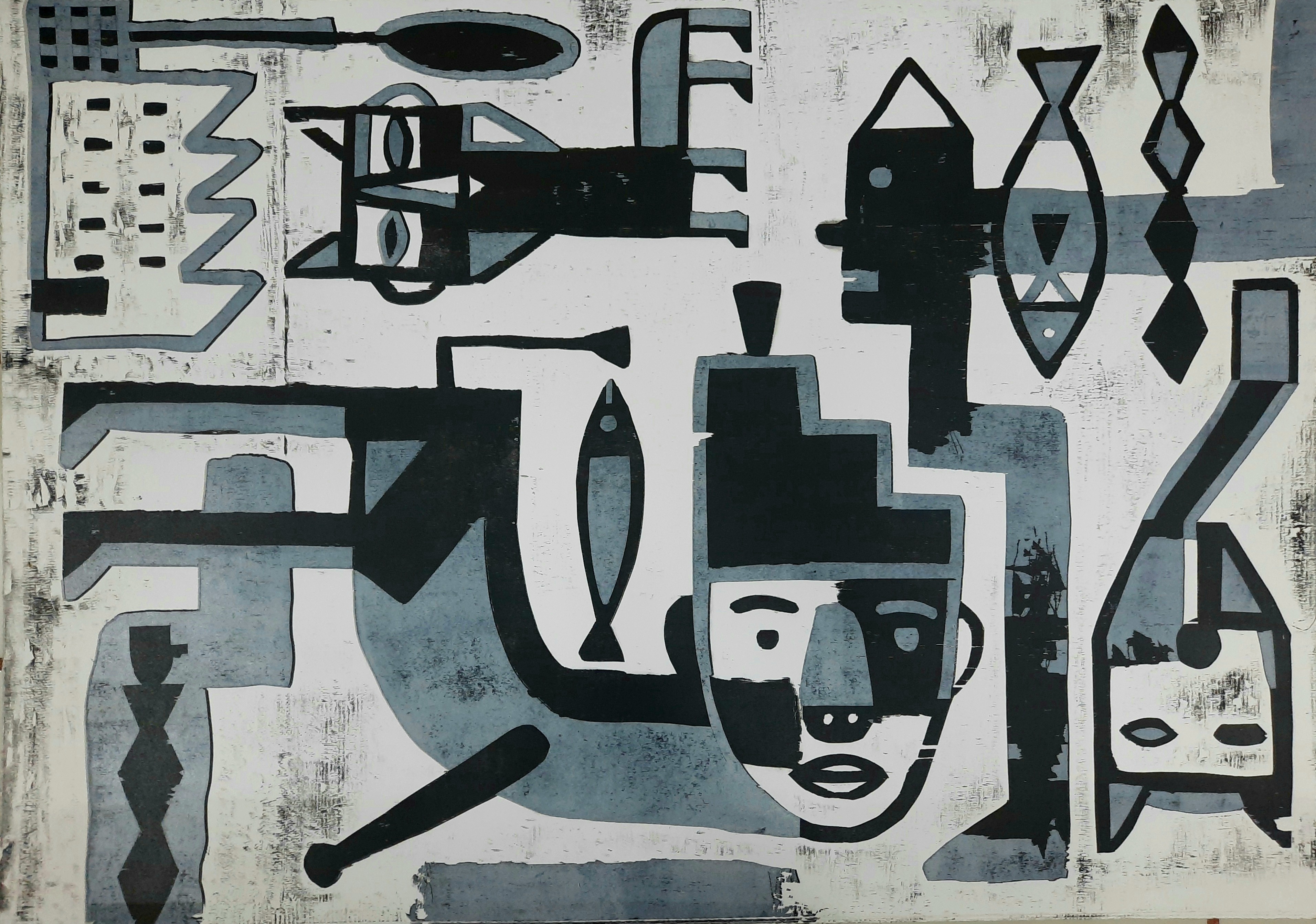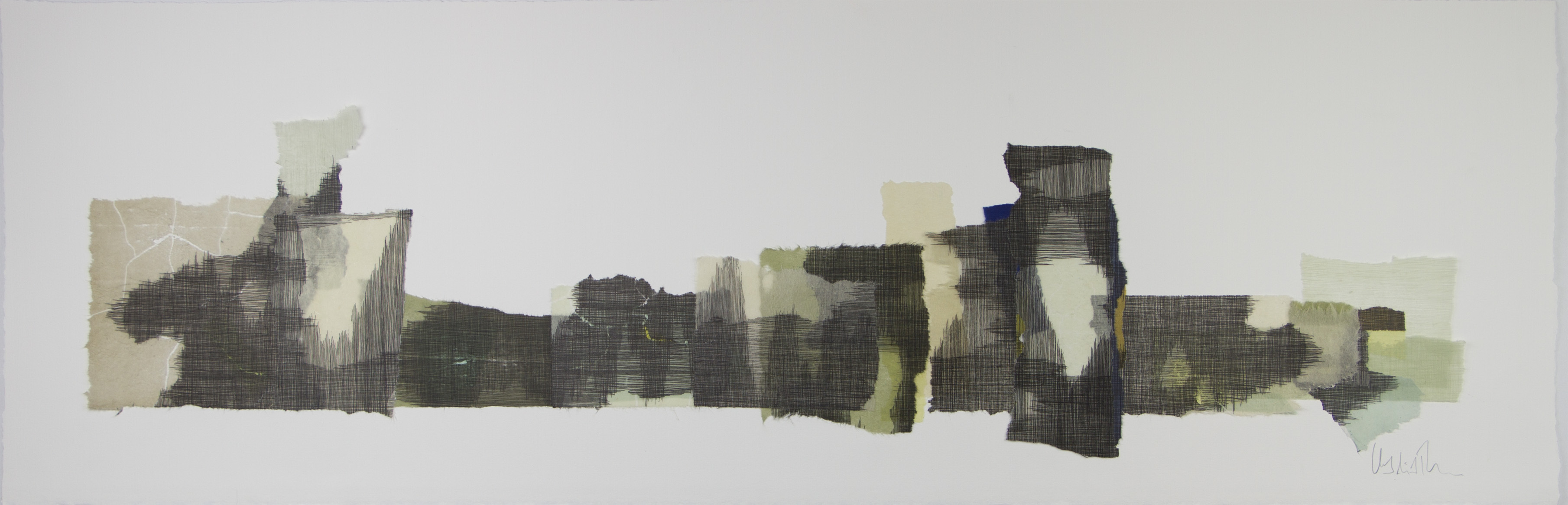 El segundo premio pertenece a una serie que se llama Ciudades Sumergidas, y que consta de 12 piezas, todas realizadas con la técnica del aguafuerte y el linóleo y utilizando la transparencia y la veladura mediante la superposición de papeles desgastados y rotos.