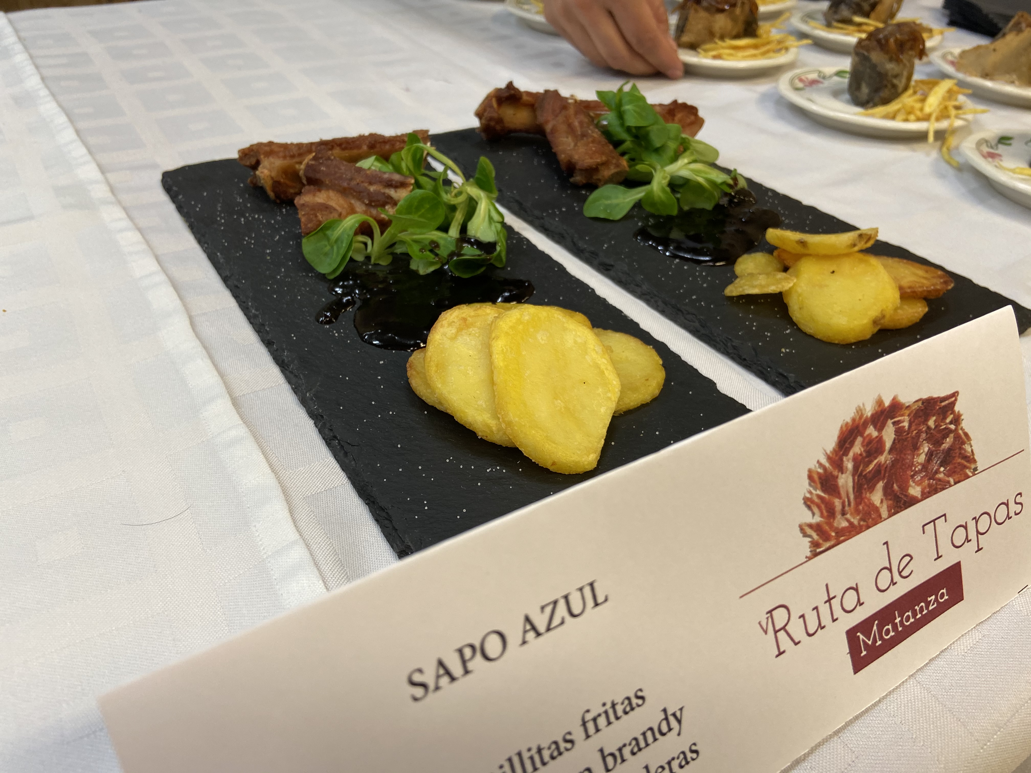 Algunas de las tapas propuestas tienen nombres tan sugerentes como «Falsa longaniza de revolconas con matanza del valle de Amblés, torrezno de Soria y explosión de menta», «Panceta teriyaki» o «Costillitas fritas marinadas en brandy con patatas panaderas y salsa bourbon» y otros tradicionales como «Judiones de La Granja con oreja y morro», «Crujiente de morcilla» o «Empanada de lomo de cerdo».