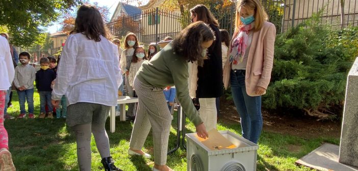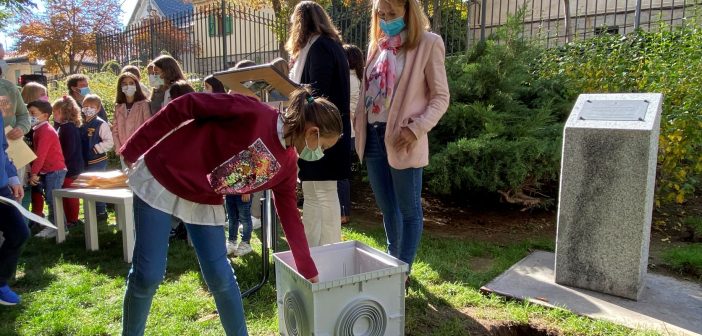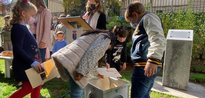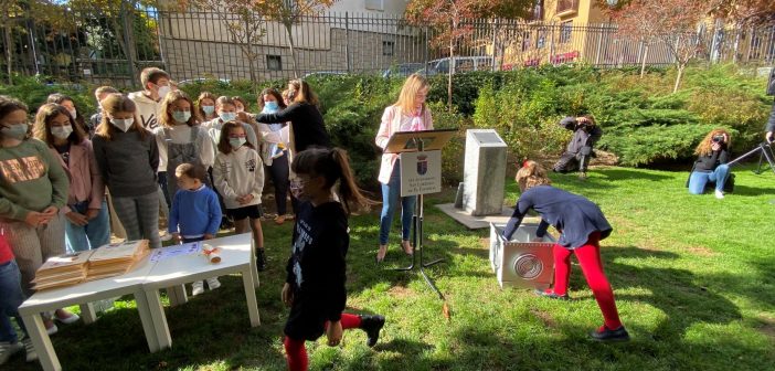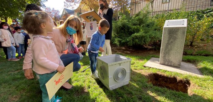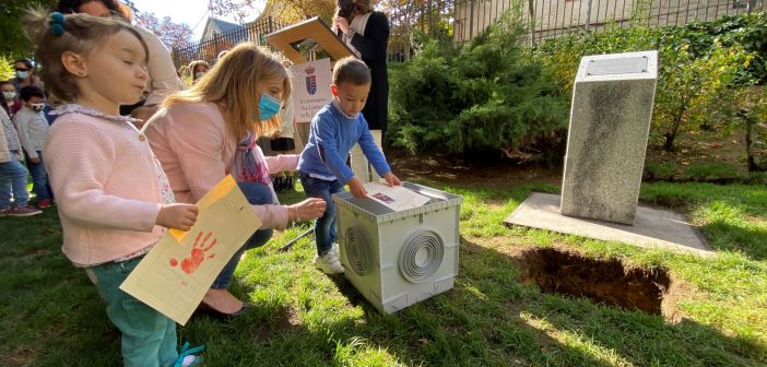 En la mañana de ayer domingo, una representación de escolares de San Lorenzo de El Escorial ha enterrado una cápsula del tiempo conteniendo los recuerdos y emociones vividos durante el pasado curso, marcado por la covid, en un emplazamiento del parque de Los Romeros, acto al que además de miembros de la Corporación Local y las familias, se sumó un gran número de vecinos.