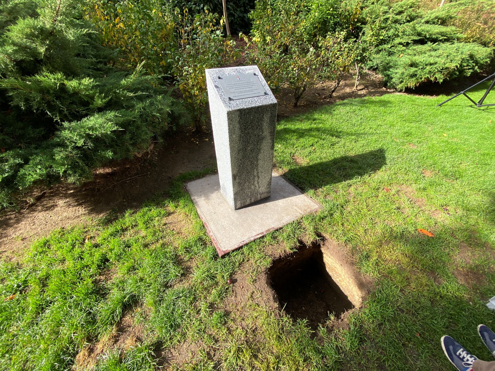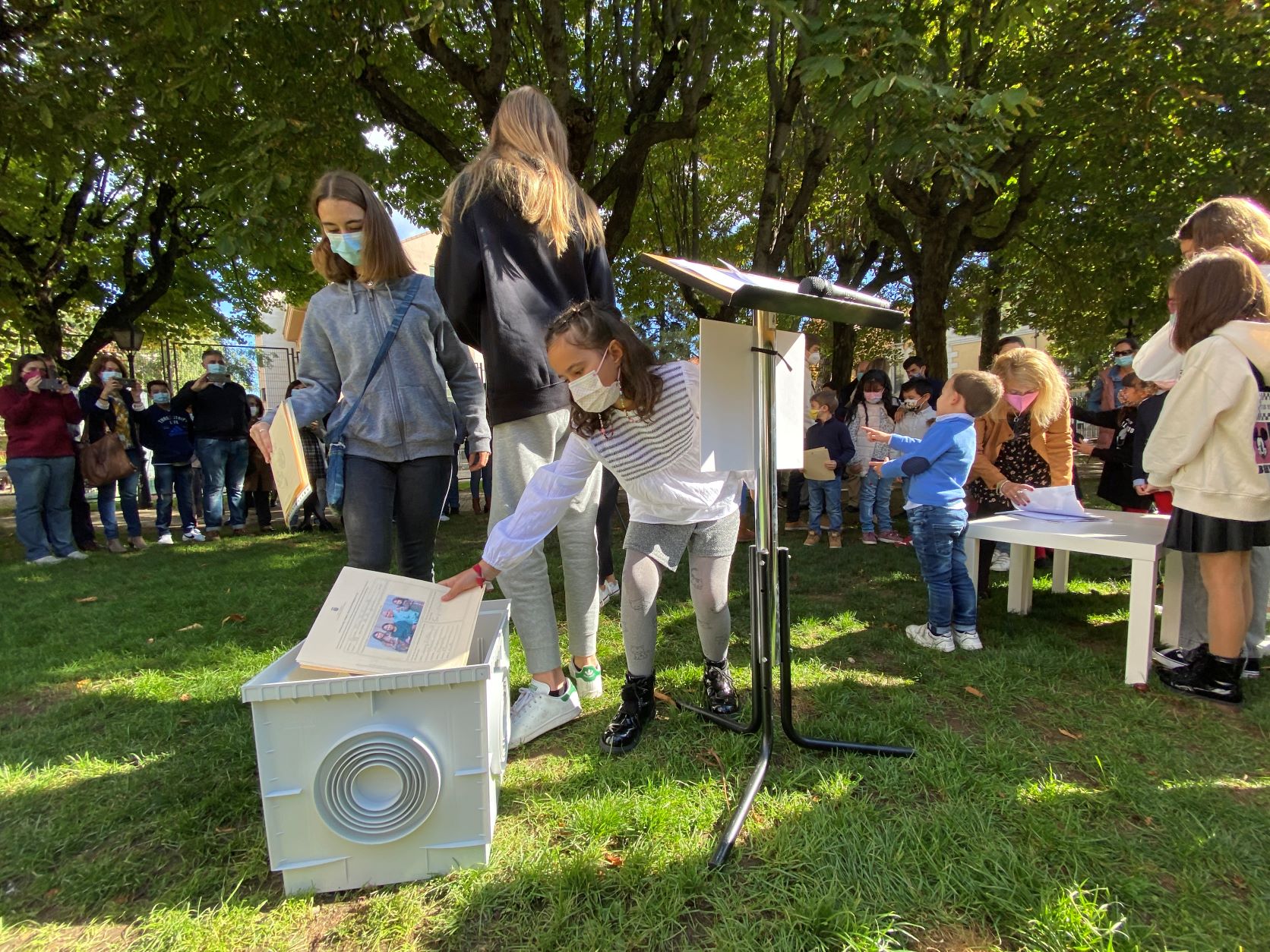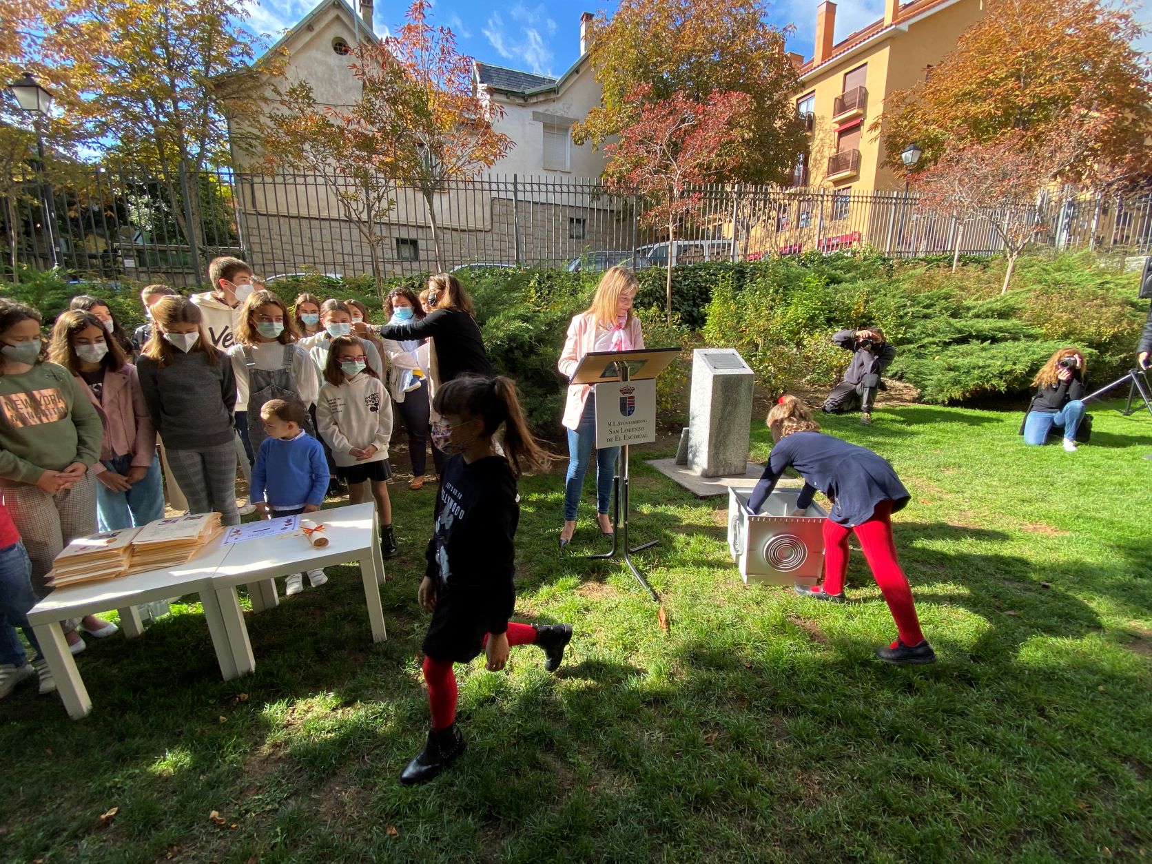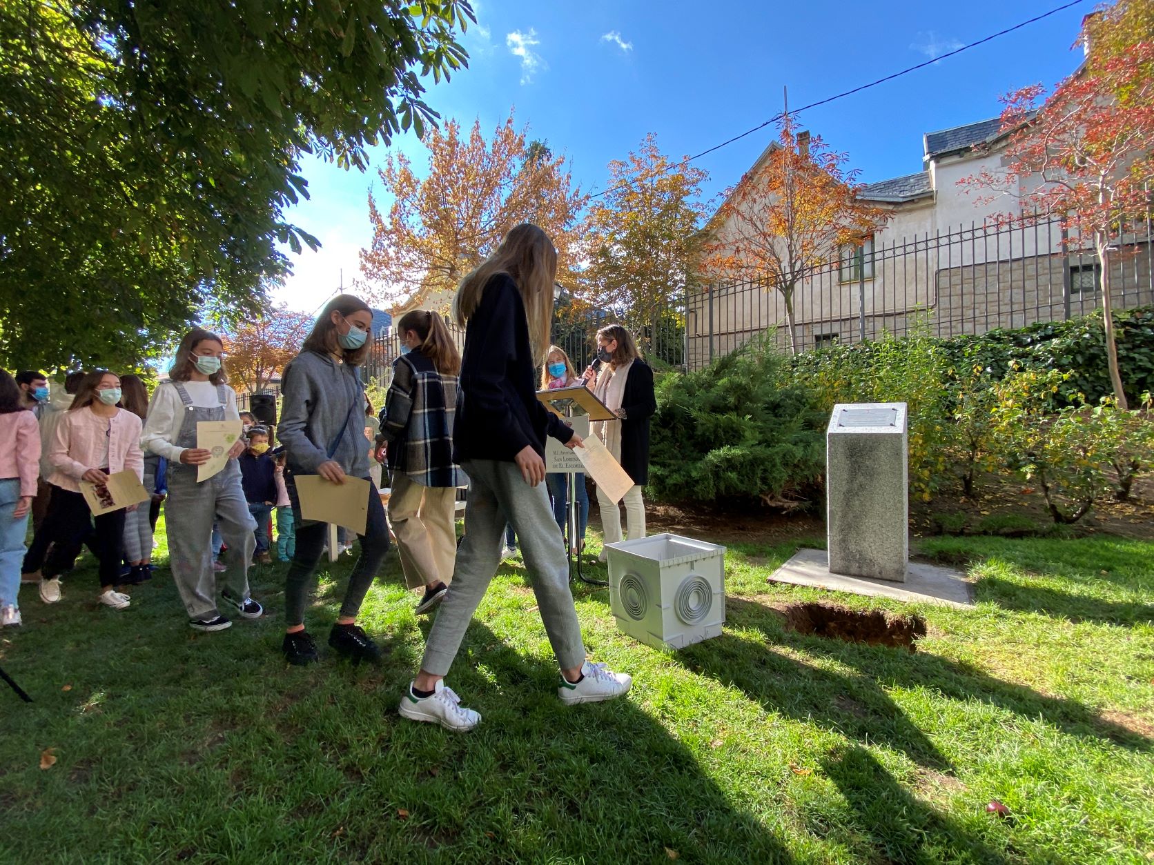 La cápsula se ha situado ante un monolito conmemorativo en el que una placa recordará el comportamiento responsable y ejemplar de los niños y las niñas de San Lorenzo durante la pandemia, y será abierta dentro de 25 años para recordar lo que dejamos atrás.