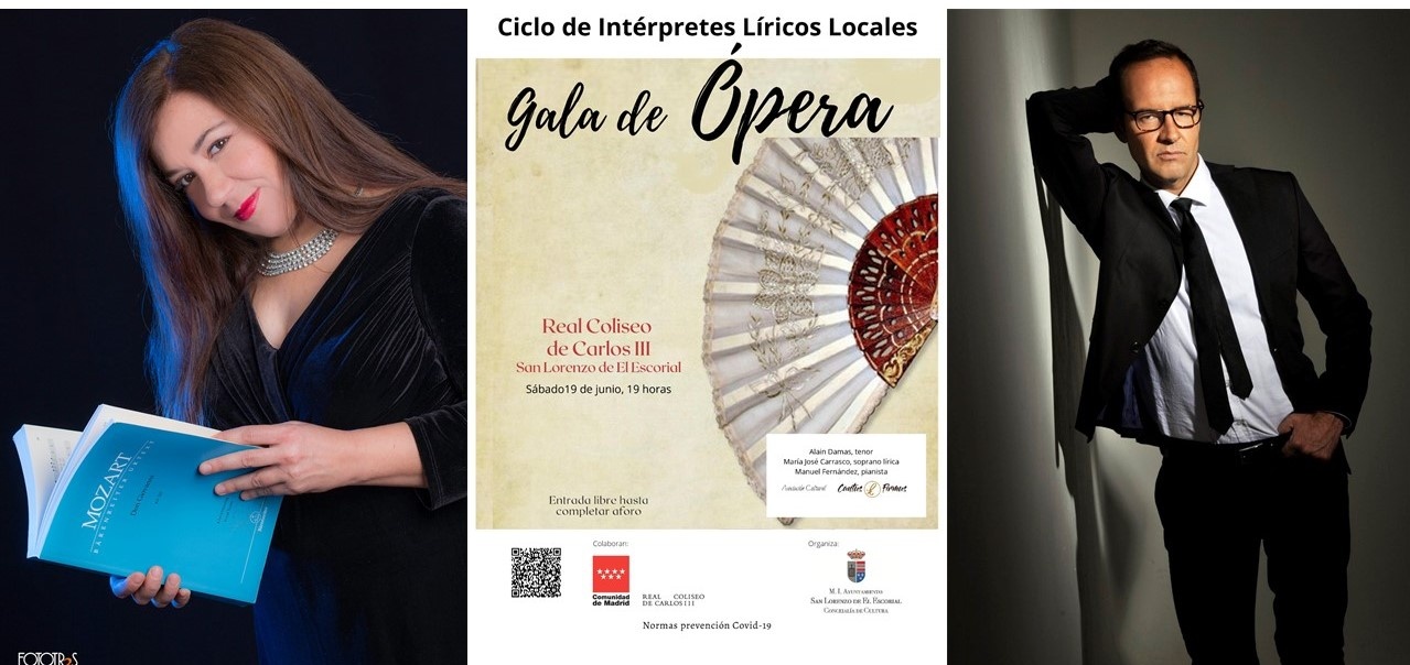 El Real Coliseo de Carlos III es el escenario que este sábado, a las 19:00 horas, acogerá la Gala de Ópera protagonizada por la soprano María José Carrasco y el tenor Alain Damas, acompañados al piano por Manuel Fernández, dentro del Ciclo de Intérpretes Líricos Locales, puesto en marcha por la Concejalía de Cultura del Ayuntamiento de San Lorenzo de El Escorial.