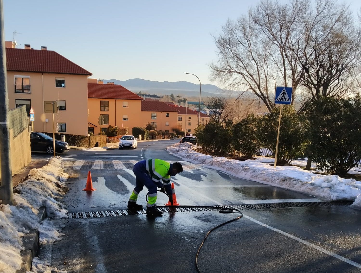 - Retirada de la nieve que continúe en el interior o cualquier otro elemento que pueda dificultar la correcta conducción de los pluviales.