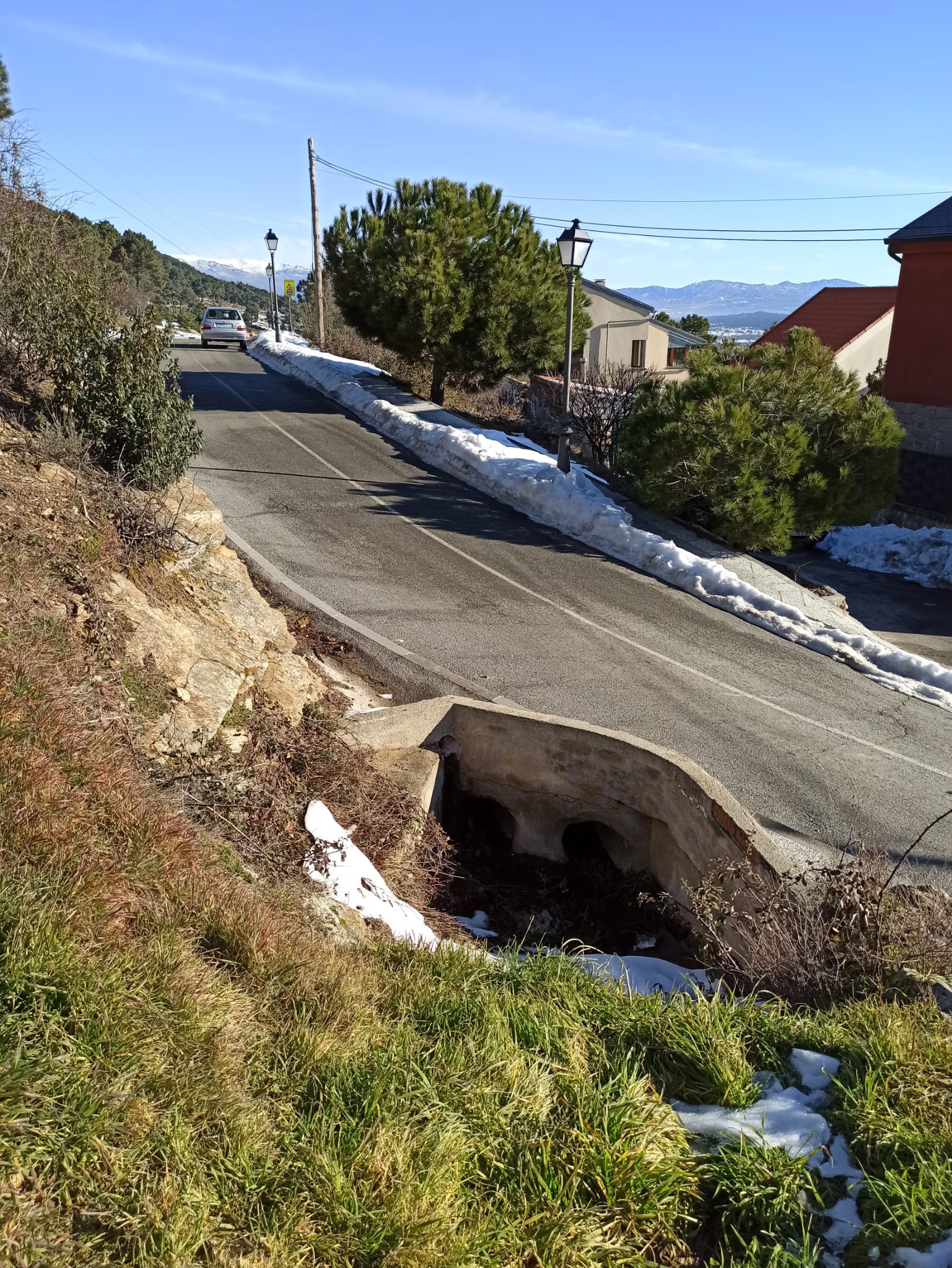 - Si están ocultos bajo la nieve, se recomienda, como mínimo, la limpieza de la superficie del elemento y un cerco perimetral para facilitar el acceso de los pluviales.