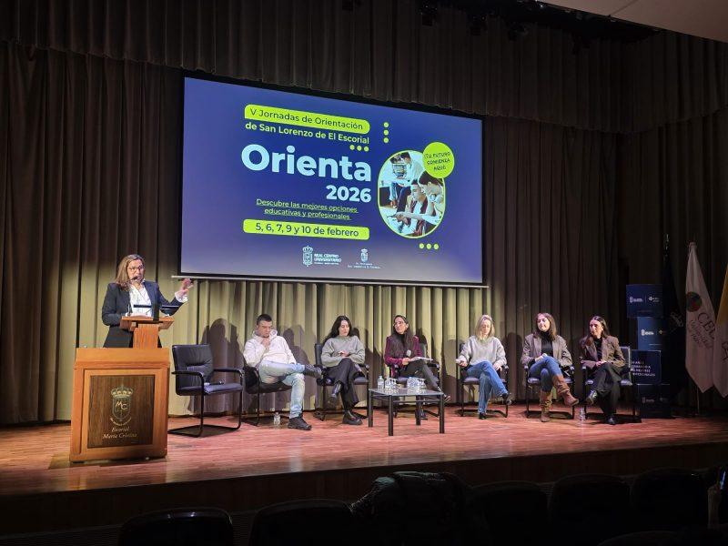 Hoy se han inaugurado las V Jornadas de Orientación Educativa y Profesional de San Lorenzo de El Escorial, “Orienta 2026”, un evento que se ha consolidado como referente para ayudar a los estudiantes de los últimos cursos de la enseñanza secundaria y de bachillerato a que conozcan las posibilidades que tienen a su disposición para elegir centro educativo en el que continuar sus estudios superiores, decantarse por la formación profesional o por las enseñanzas artísticas o dirigir su carrera hacia otras opciones, como los Cuerpos y Fuerzas de Seguridad del Estado o el cuerpo de Bomberos.