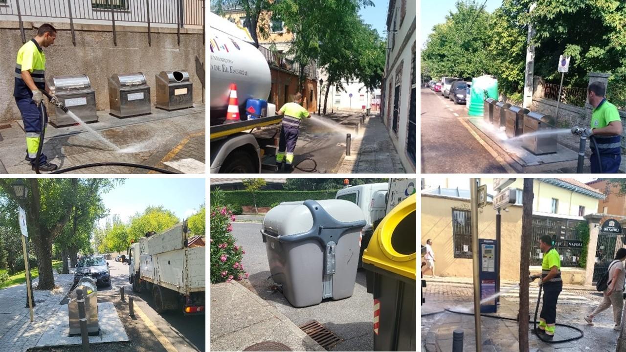 El operativo está haciendo hincapié en el fregado e hidrolimpieza de las zonas de aceras más afectadas (como las zonas sensibles del casco urbano, la zona de la Lonja del Monasterio o El Parque), así como en la eliminación de las micciones de las mascotas tratando en lo posible de mitigar los efectos del calor.