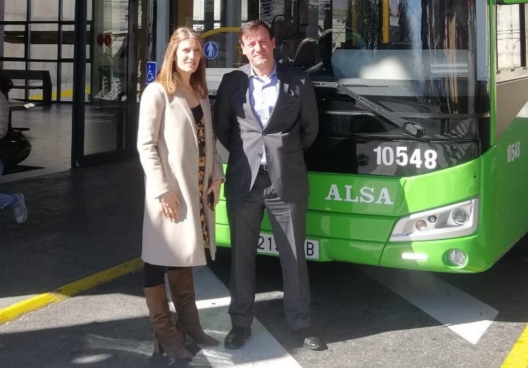 Sérgio Adegas, de ALSA, invitó a la Alcaldesa, Carlota López Esteban, a conocer el interior de los nuevos autobuses destacando que: “esta mejora en la línea circular viene a dar respuesta a la demanda de los usuarios que en horas punta veían limitado el acceso al autobús y pedían mayor capacidad para los desplazamientos urbanos”.