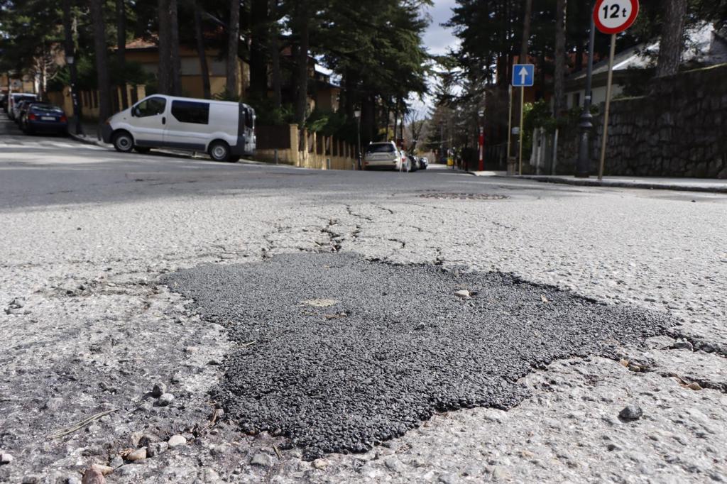 La nieve y el hielo acumulados, así como los trabajos continuados durante días realizados con palas y quitanieves para su retirada, han provocado desperfectos en el pavimento y en el asfaltado de numerosas vías del municipio. Por ello, desde que se despejaron las calles para el tránsito, se está trabajando para repararlos.