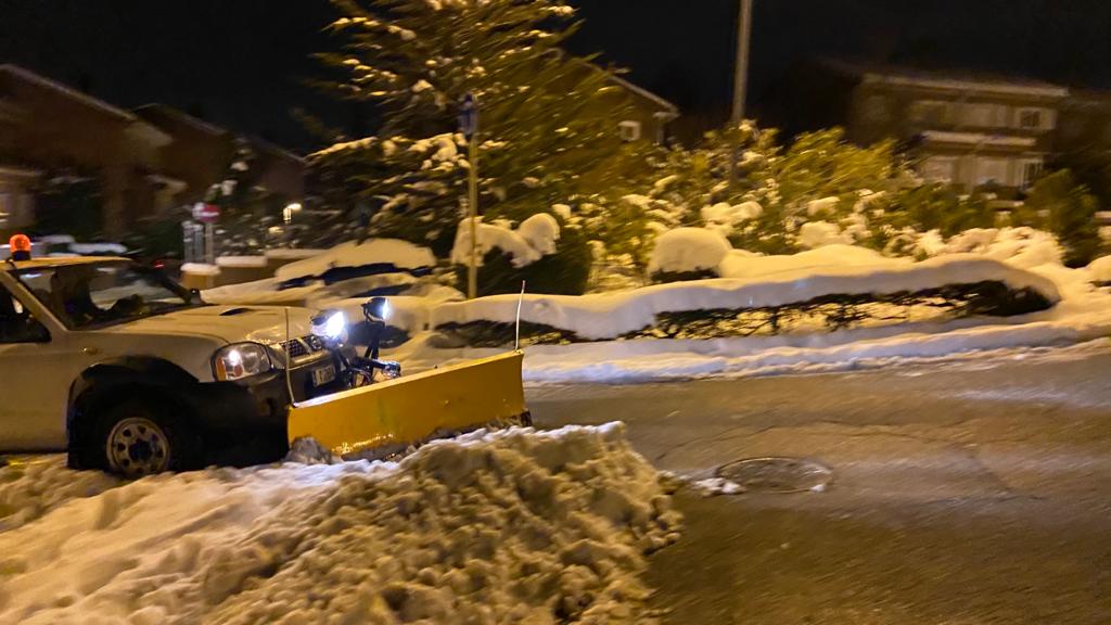 Desde que el pasado viernes comenzó la borrasca Filomena, más de 45 trabajadores han participado en las labores de limpieza para intentar retirar los casi 70 cm de nieve acumulada en las calles del municipio lo antes posible.