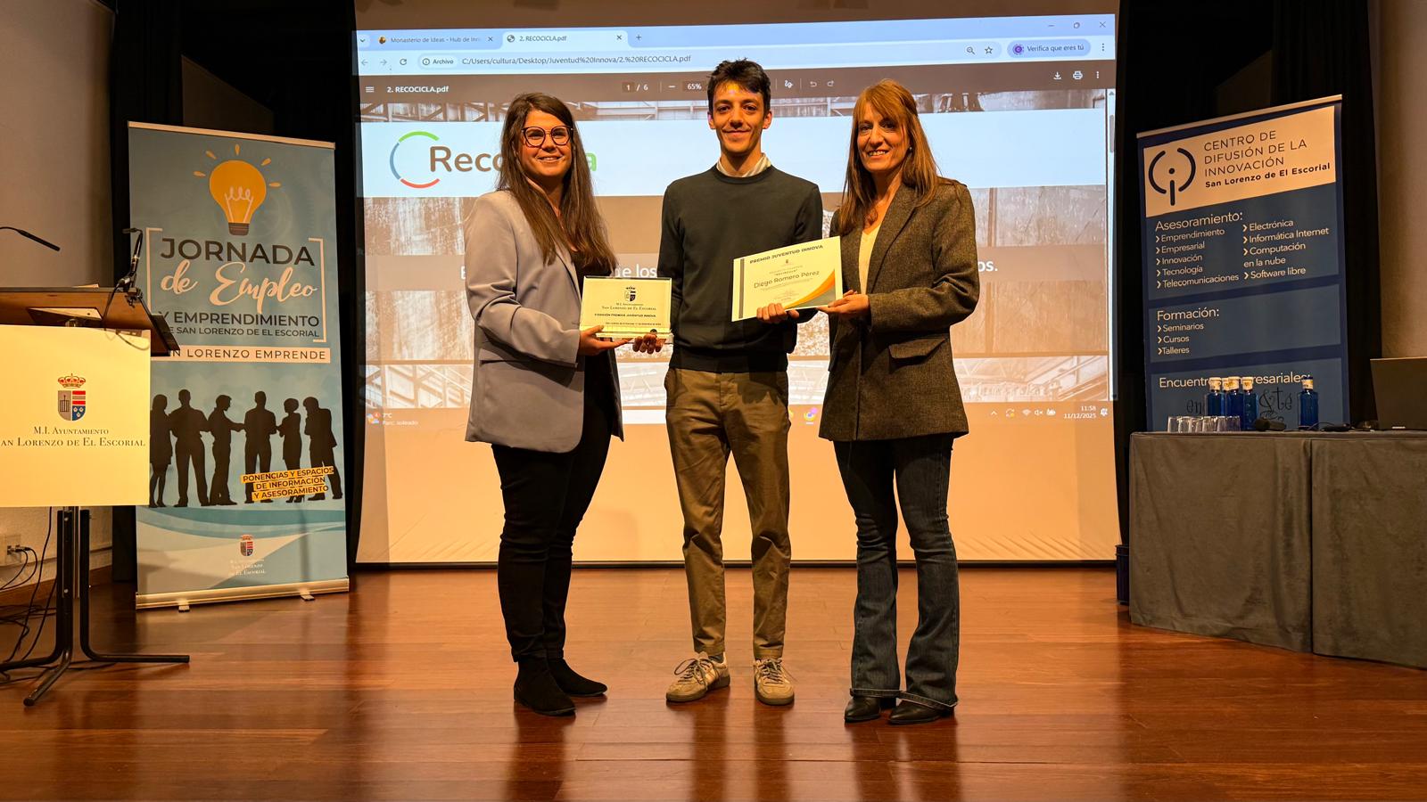 Esta mañana se han entregado los premios Juventud Innova, durante el desarrollo de la Jornada de Empleo y Emprendimiento de San Lorenzo de El Escorial. De los proyectos presentados, el jurado ha otorgado el reconocimiento a “RecoCicla”, una plataforma para facilitar una segunda vida a los objetos, ideada por Diego Romero Pérez. Fnalista de los premios fue “Goblin Ajedrez”, de Diego Álvarez Alba, un proyecto educativo que tiene como base el ajedrez y las matemáticas