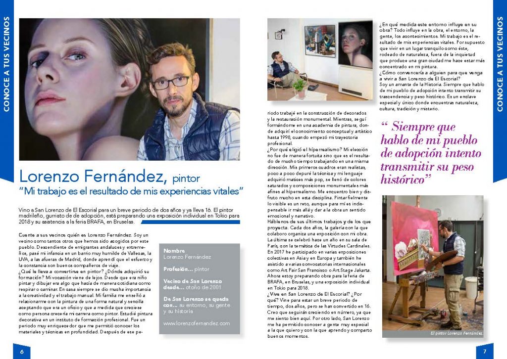 La sección de entrevistas «Conoce a tus vecinos», de la Guía de Actividades, nace con la intención de que sanlorentinos y sanlorentinas de nacimiento o de adopción, que destacan en su campo profesional o en alguna faceta de su vida, sean conocidos por todos sus vecinos.
